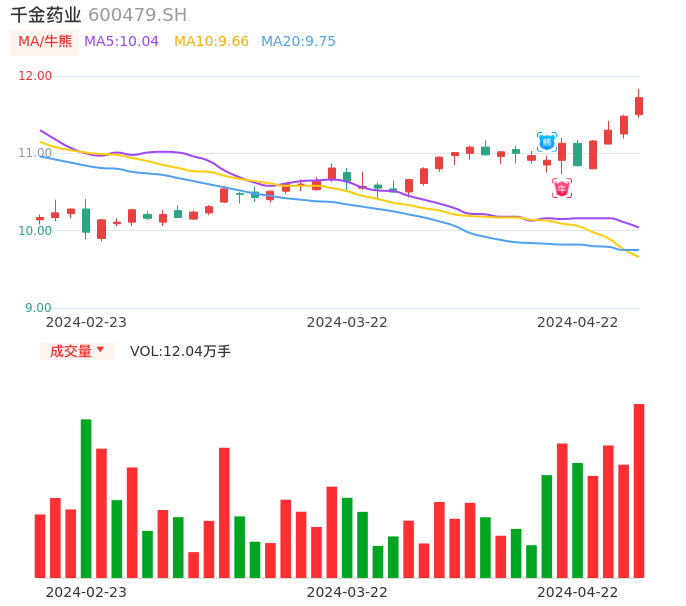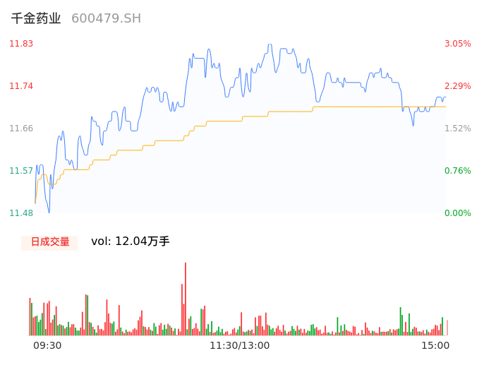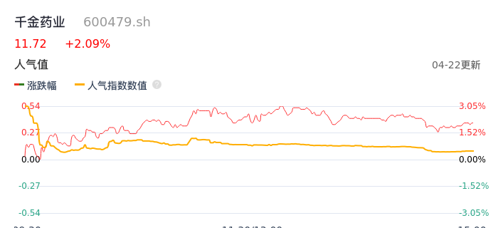 04月22日,千金药业收报11.72,股价涨幅2.09%,成交金额1.41亿元,换手率2.88%。