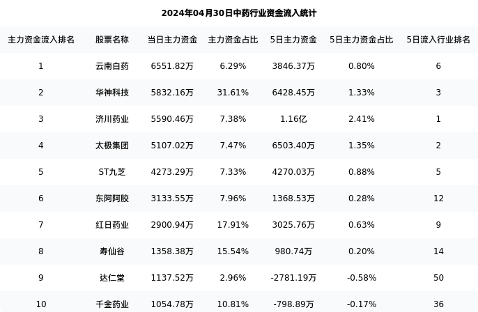 从主力资金流向来看,中药行业今日主力资金流入37.99亿元,在所有申万二级行业中排名:32/131。