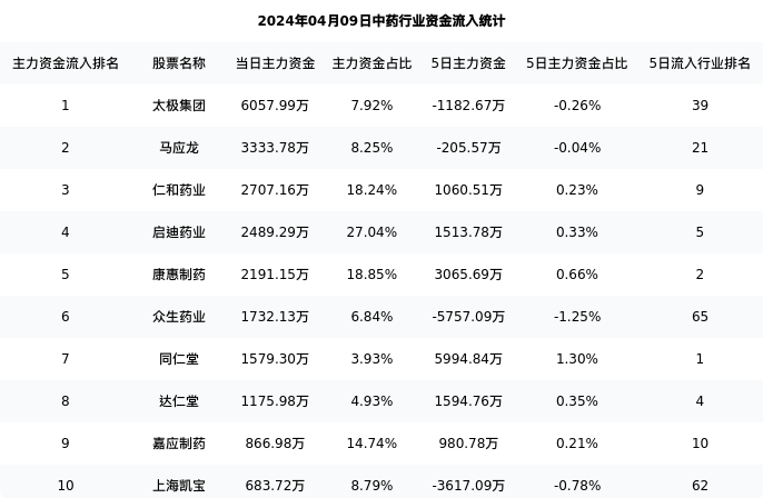 从主力资金流向来看,中药行业今日主力资金流入19.18亿元,在所有申万二级行业中排名:13/131。