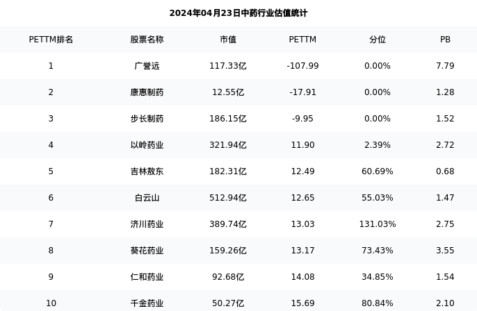 从估值角度看:千金药业最新市盈率PETTM为15.69,在行业内排名7/71,处于80.84分位。