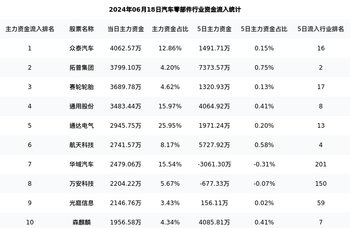 从主力资金流向来看,汽车零部件行业今日主力资金流入60.87亿,在所有申万二级行业中排名:16/131。