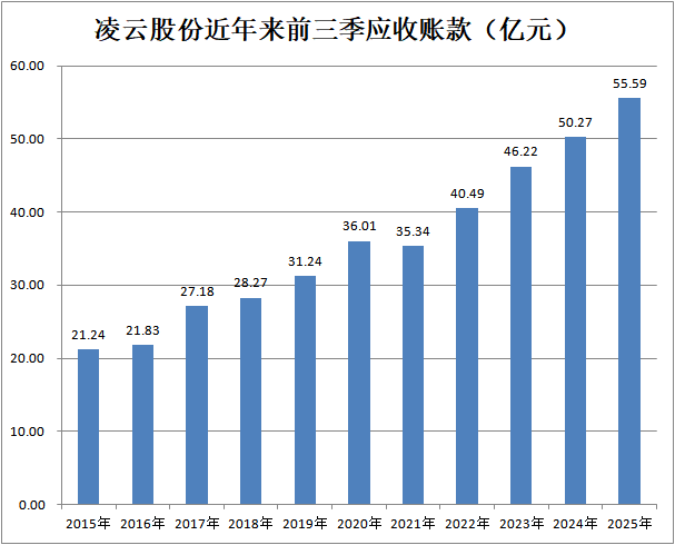 凌云股份三季报显示,公司应收账款金额达到55.59亿元,同比增长超10%,高于其营收增速。往前看,公司今年三季度末的应收账款金额已经创出了历史同期新高。此外,按照应收账款占营收比例来看,公司三季度末该比值达到39.51%,创出2016年来同期新高。
