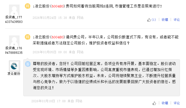 值得注意的是,公司在投资者互动平台的互动频率较低,近期12条提问仅回复3条,回复率仅为25%。例如,关于“如何看待周线8连阴,市值管理工作是否照常进行”的疑问,目前尚未获得回应。更早前,3月3日有投资者曾质问“公司是不是有雷呀?股价喋喋不休,公司的市值管理就是这么做的?还有回答投资者问题这么傲慢的?”,至今亦无答复。