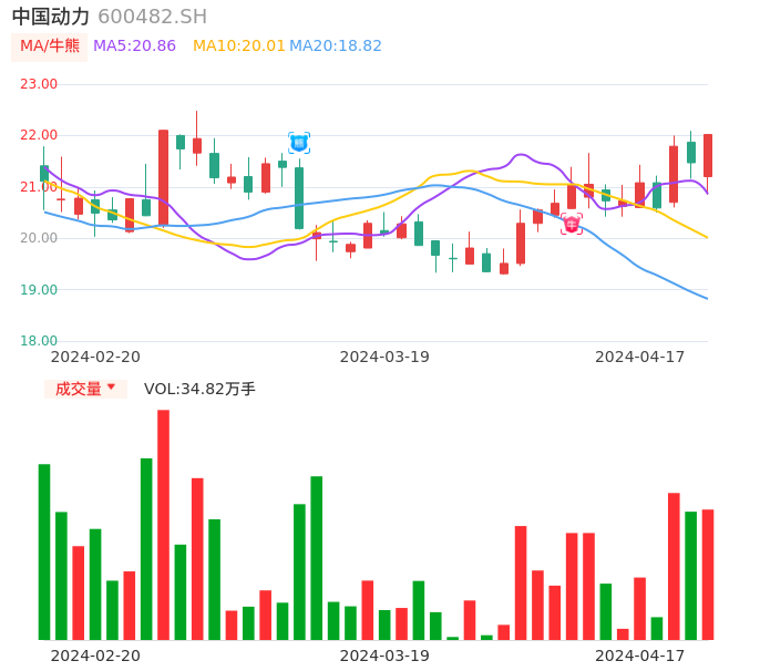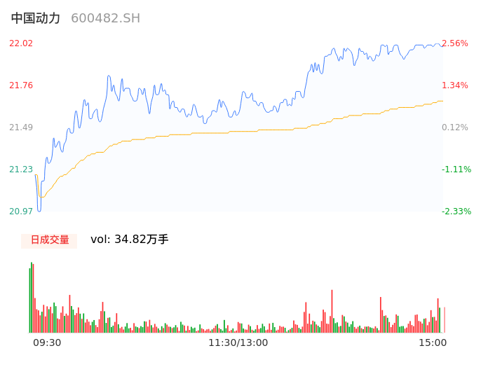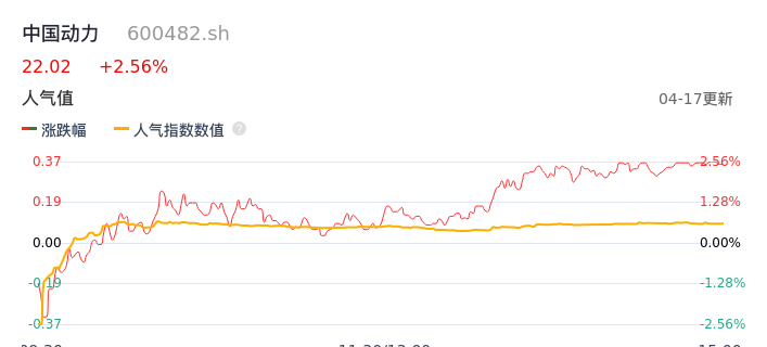 04月17日,中国动力收报22.02,股价涨幅2.56%,成交金额7.54亿元,换手率1.59%。