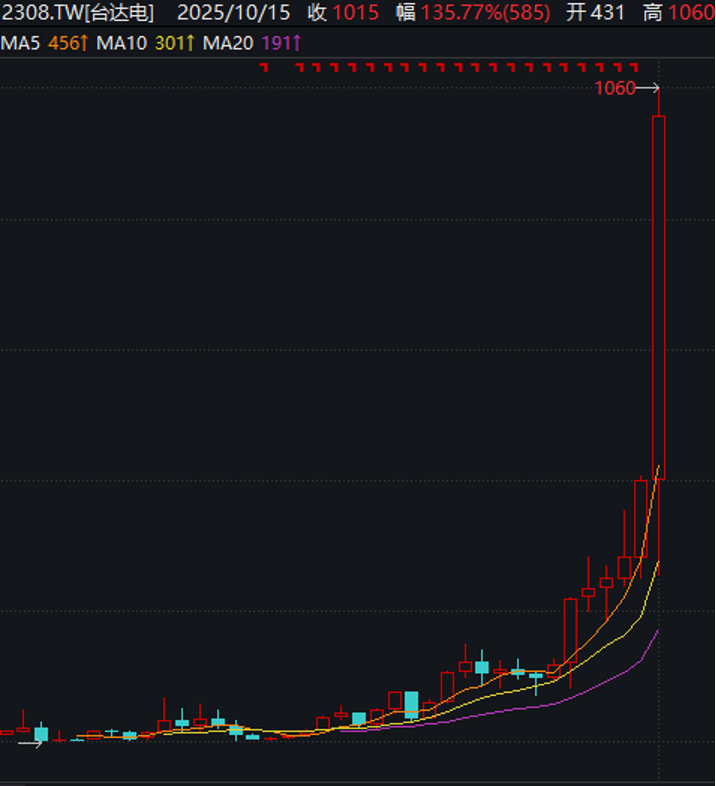 受益于AI浪潮发展,台达电近年来股价频频创出历史新高,已连涨7年,2019年至2024年涨幅分别为20.75%、78.87%、6.46%、6.67%、12.65%和39.90%,今年以来再度大涨近136%。 截至目前,公司市值超过6100亿元。
