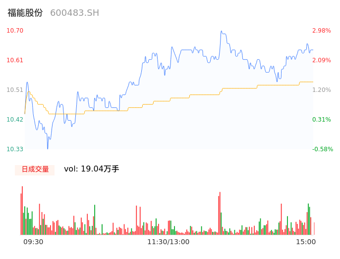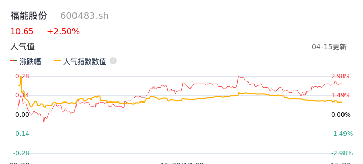 04月15日,福能股份收报10.65,股价涨幅2.50%,成交金额2.01亿元,换手率0.74%。