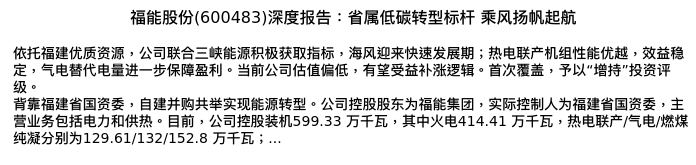 值得注意的是:2024年03月招商证券的宋盈盈分析师,首次发布关于福能股份的研究报告,标题为:福能股份(600483)深度报告:省属低碳转型标杆 乘风扬帆起航。