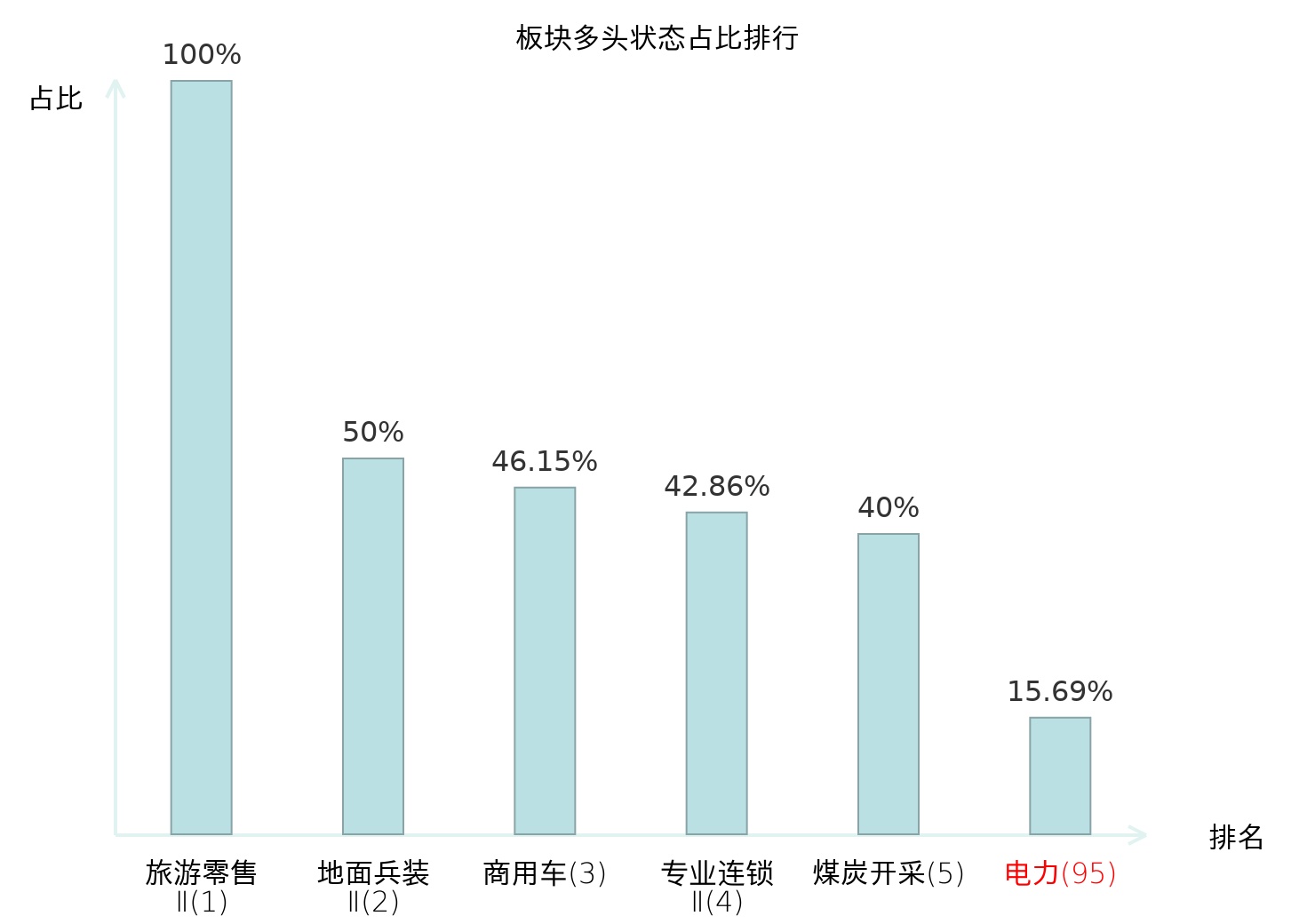 全市场所有行业板块中主力多头状态占比排名中,旅游零售Ⅱ板块位居第一。汽车服务板块名次提升最快,较昨日上升83位。