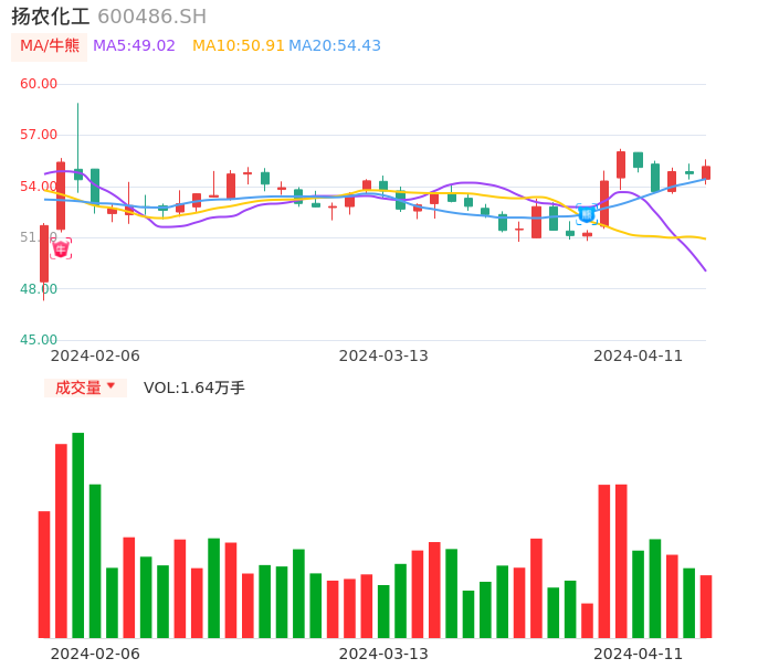 值得注意的是:2024年04月长城证券的肖亚平分析师,首次发布关于扬农化工的研究报告,标题为:扬农化工(600486):农药行业短期低迷 看好公司葫芦岛项目进展。
