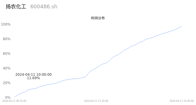 600486扬农化工2024年04月11日成交1.64万手,成交金额9040.97万元,相较昨日缩量1857手,换手率0.41%,成交清淡。