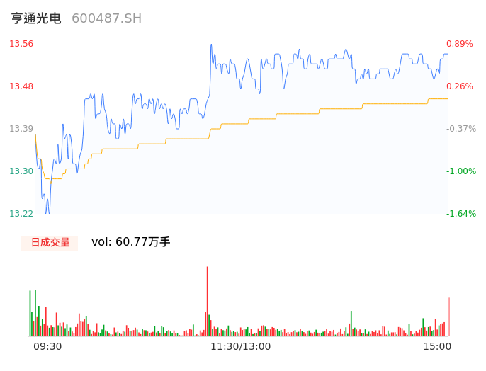 04月25日,亨通光电收报13.54,股价涨幅0.74%,成交金额8.17亿元,换手率2.46%。