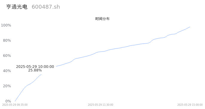 600487亨通光电2025年05月29日成交29.22万手,成交金额4.47亿,相较昨日放量3.20万手,换手率1.20%,成交清淡。