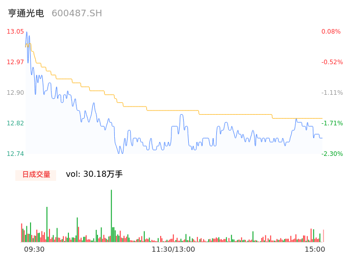 04月23日,亨通光电收报12.78,股价涨幅-1.99%,成交金额3.87亿元,换手率1.22%。