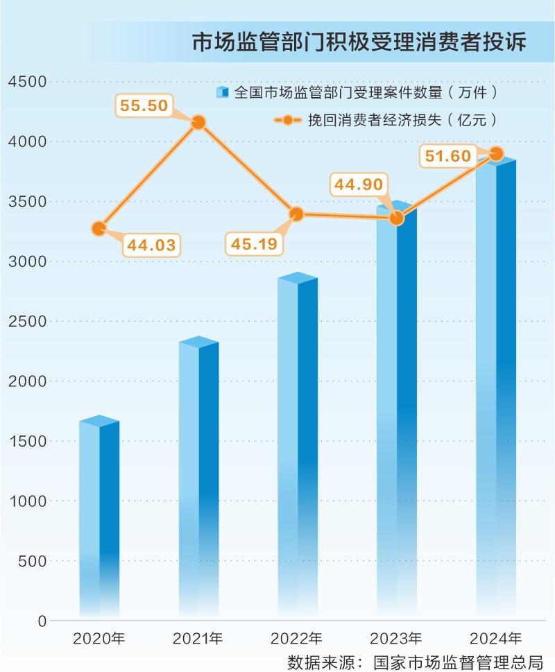 消费环境的优化对于激发消费市场活力至关重要。2024年,全国市场监管部门通过全国12315平台、电话、传真、窗口等渠道共受理消费者投诉、举报和咨询3923.9万件。其中,投诉1862.5万件,举报546.9万件,咨询1514.5万件,为消费者挽回经济损失51.6亿元。