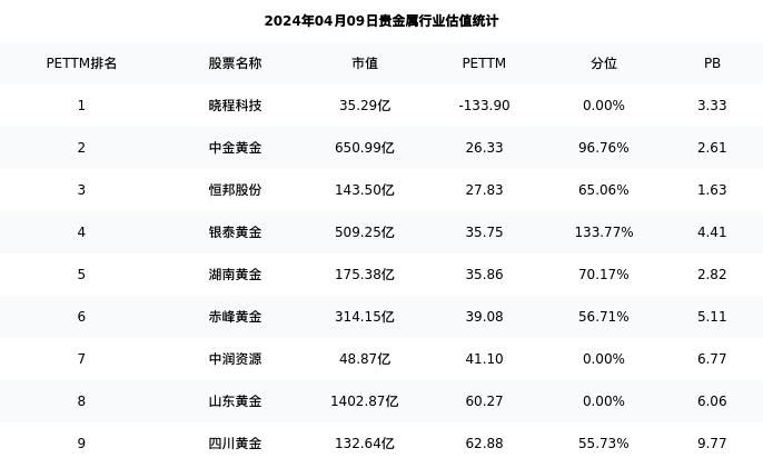 从估值角度看:中金黄金最新市盈率PETTM为26.33,在行业内排名2/12,处于96.76分位。