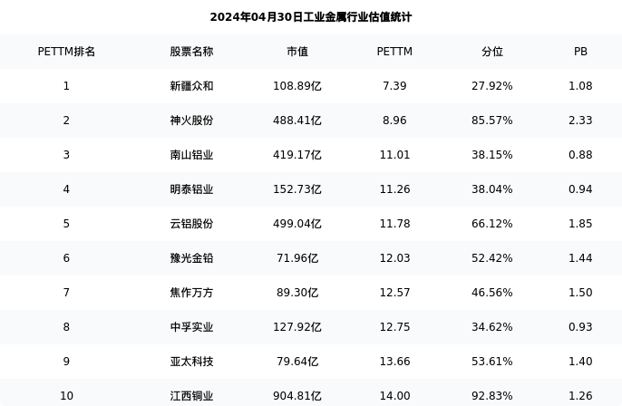 鹏欣资源最新报告期数据为一季度,下表汇总了工业金属行业内市值靠前的公司一季度主要经营数据