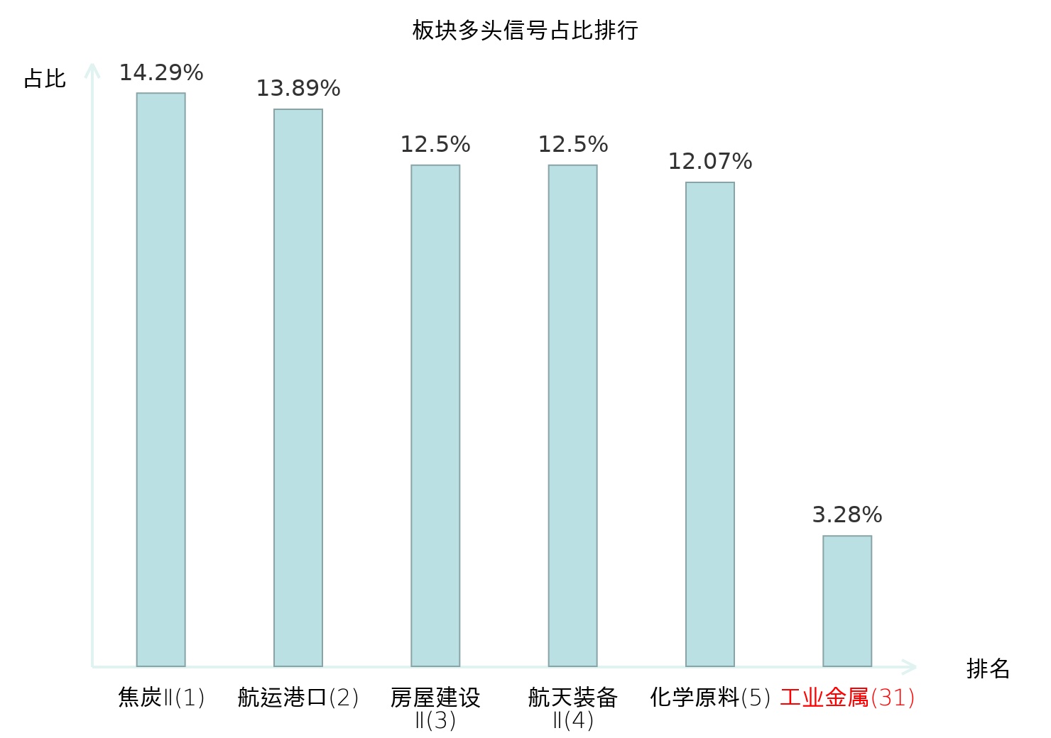 全市场所有行业板块中主力多头信号占比排名中,焦炭Ⅱ板块位居第一。焦炭Ⅱ板块名次提升最快,较昨日上升120位。
