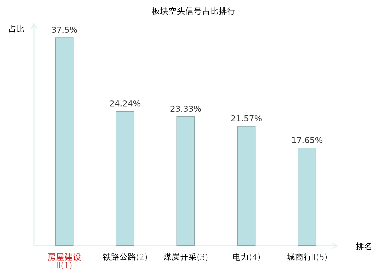 全市场所有行业板块中主力空头信号占比排名中,房屋建设Ⅱ板块位居第一。煤炭开采板块名次提升最快,较昨日上升117位。