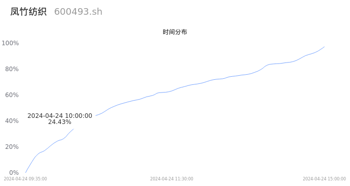 600493凤竹纺织2024年04月24日成交9.72万手,成交金额4748.46万元,相较昨日缩量5.46万手,换手率3.57%,成交清淡。