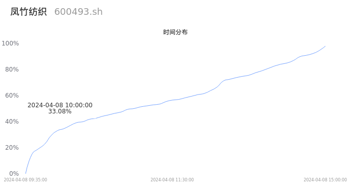 600493凤竹纺织2024年04月08日成交12.78万手,成交金额7583.00万元,相较昨日缩量4.23万手,换手率4.70%,成交清淡。
