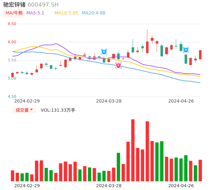 值得注意的是:2024年04月华创证券的马金龙/刘岗分析师,首次发布关于驰宏锌锗的研究报告,标题为:驰宏锌锗(600497)2024年一季度点评:锌价下跌和管理费用增加拖累公司业绩 看好未来成长性。