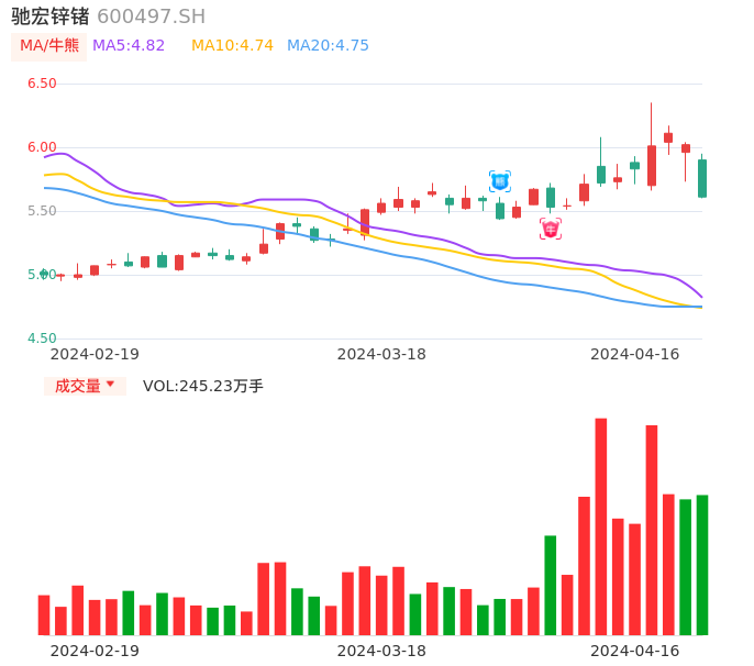 值得注意的是:2024年03月华创证券的马金龙/刘岗分析师,首次发布关于驰宏锌锗的研究报告,标题为:驰宏锌锗(600497):资产减值和投资收益拖累公司业绩 看好未来成长性。