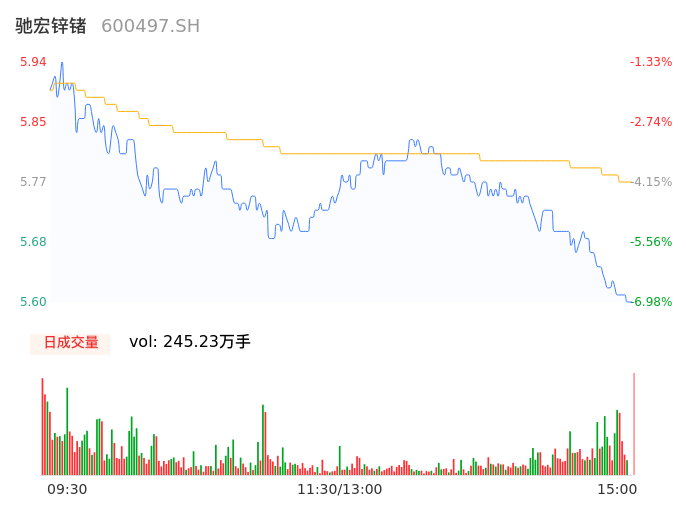 04月16日,驰宏锌锗收报5.61,股价涨幅-6.81%,成交金额14.14亿元,换手率4.82%。