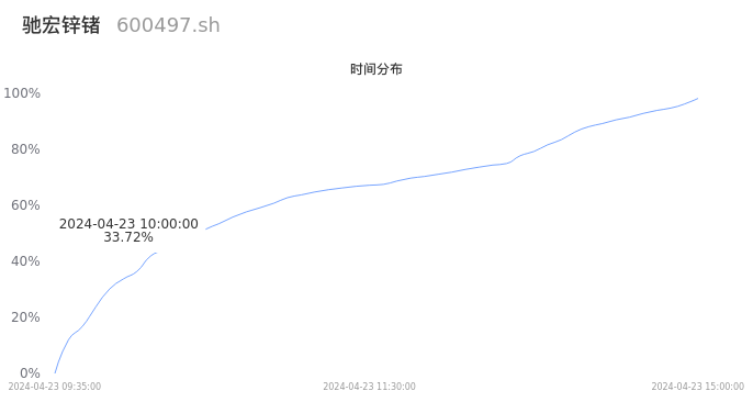 600497驰宏锌锗2024年04月23日成交159.43万手,成交金额8.78亿元,相较昨日放量20.16万手,换手率3.13%,成交清淡。