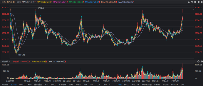 从量能数据上看,有色金属板块近期为活跃资金重点关注方向,其今日板块成交总额达2211.45亿元,较上一交易日放量近200亿元,同时也为历史最高纪录。具体个股方面,累计共有24股于月内3个交易日期间录得年内最高成交额纪录,其中,金力永磁、驰宏锌锗、兴业银锡、山东黄金、白银有色、鹏欣资源、正海磁材7股今日成交额创年内新高。