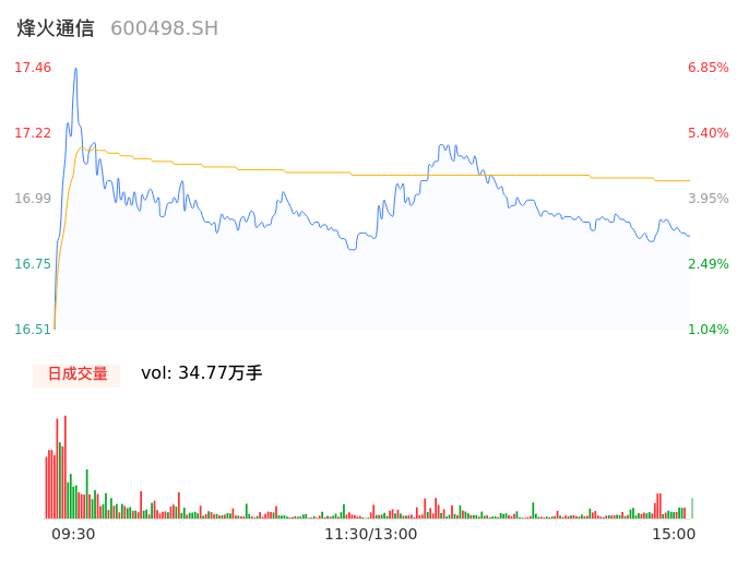 04月12日,烽火通信收报16.84,股价涨幅3.06%,成交金额5.93亿元,换手率3.03%。