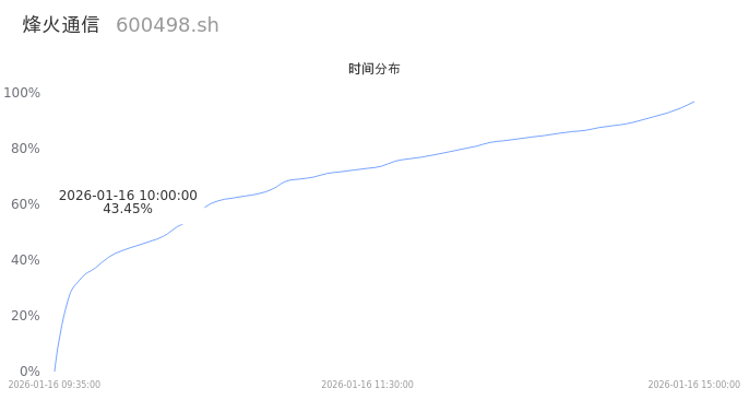 600498烽火通信2026年01月16日成交256.67万手,成交金额101.84亿,相较昨日放量231.69万手,换手率20.18%,成交活跃。