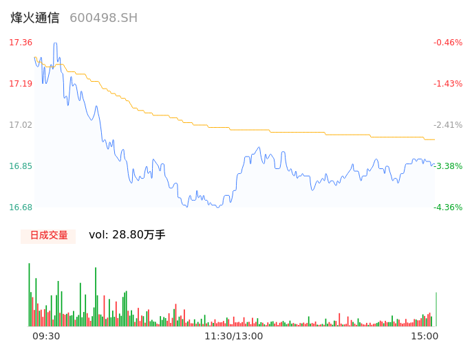 04月19日,烽火通信收报16.83,股价涨幅-3.50%,成交金额4.88亿元,换手率2.51%。
