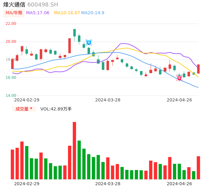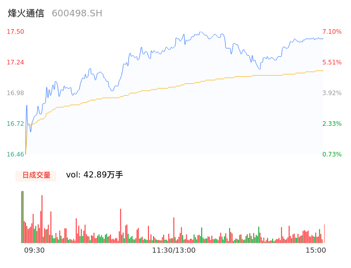 04月26日,烽火通信收报17.44,股价涨幅6.73%,成交金额7.37亿元,换手率3.73%。