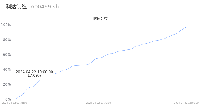 600499科达制造2024年04月22日成交13.36万手,成交金额1.33亿元,相较昨日放量1.82万手,换手率0.69%,成交清淡。
