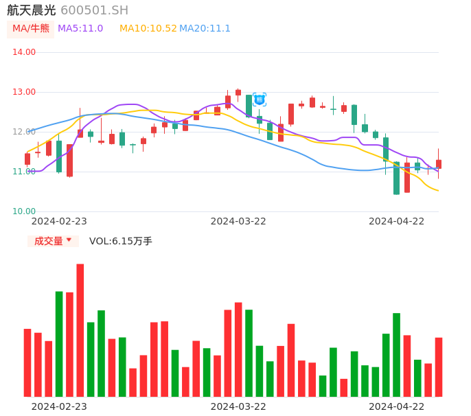 04月22日,航天晨光收报11.29,股价涨幅1.90%,成交金额6964.45万元,换手率1.46%。