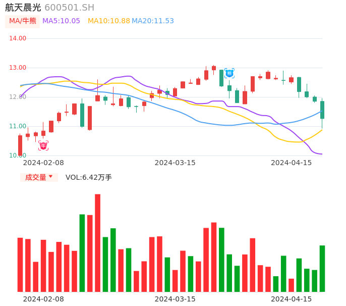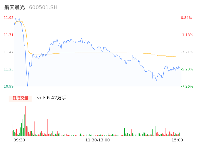 04月15日,航天晨光收报11.26,股价涨幅-4.98%,成交金额7313.43万元,换手率1.52%。