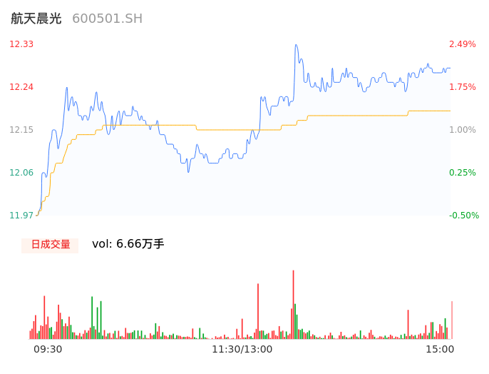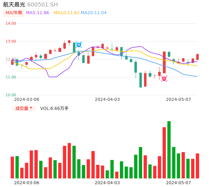 05月07日,航天晨光收报12.28,股价涨幅2.08%,成交金额8123.59万元,换手率1.58%。