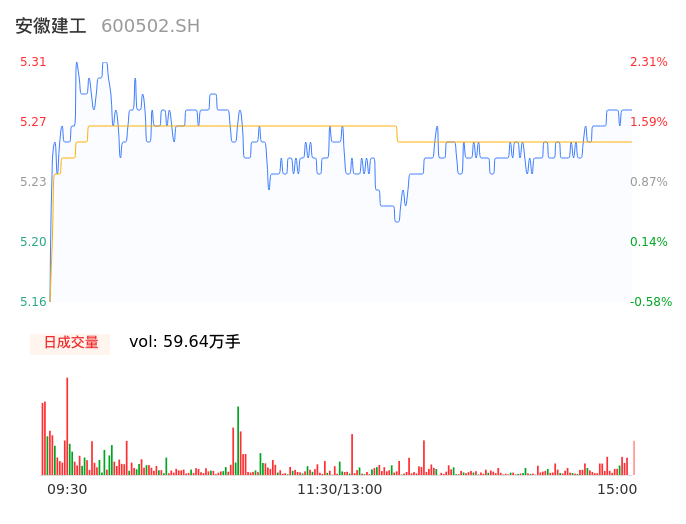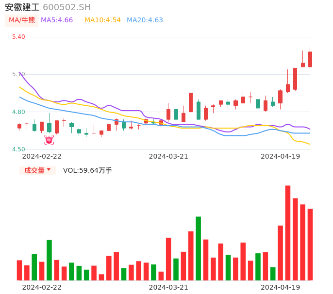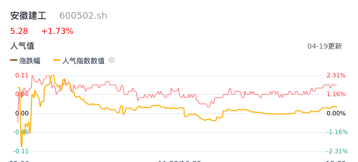 04月19日,安徽建工收报5.28,股价涨幅1.73%,成交金额3.14亿元,换手率3.47%。