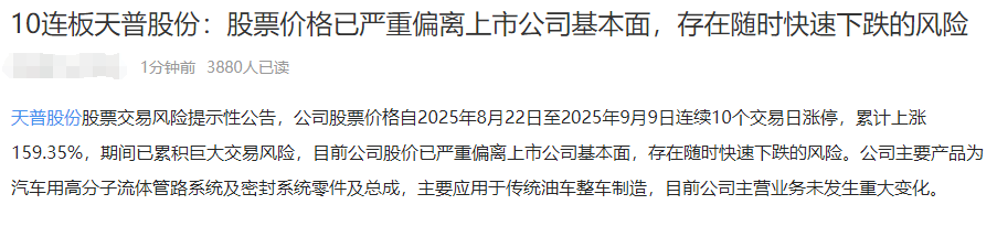 10连板:天普股份