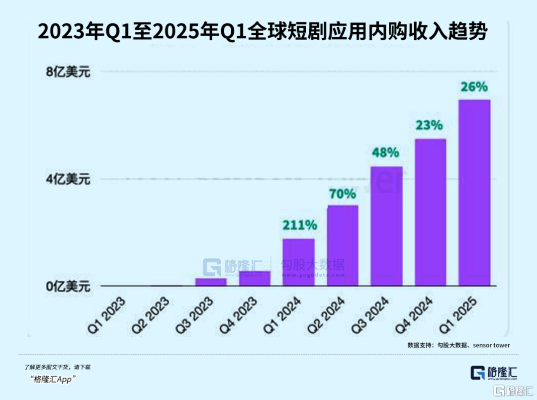 2025年第一季度,美国短剧收入环比增长20%接近3.5亿美元,贡献了全球短剧应用总收入的近一半。