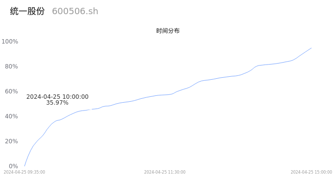600506统一股份2024年04月25日成交6.35万手,成交金额7122.27万元,相较昨日缩量4065手,换手率4.30%,成交清淡。