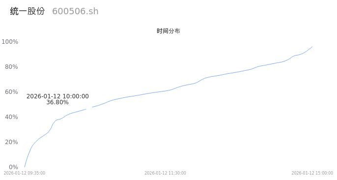 600506统一股份2026年01月12日成交29.76万手,成交金额8.34亿,相较昨日缩量7.84万手,换手率15.50%,成交活跃。
