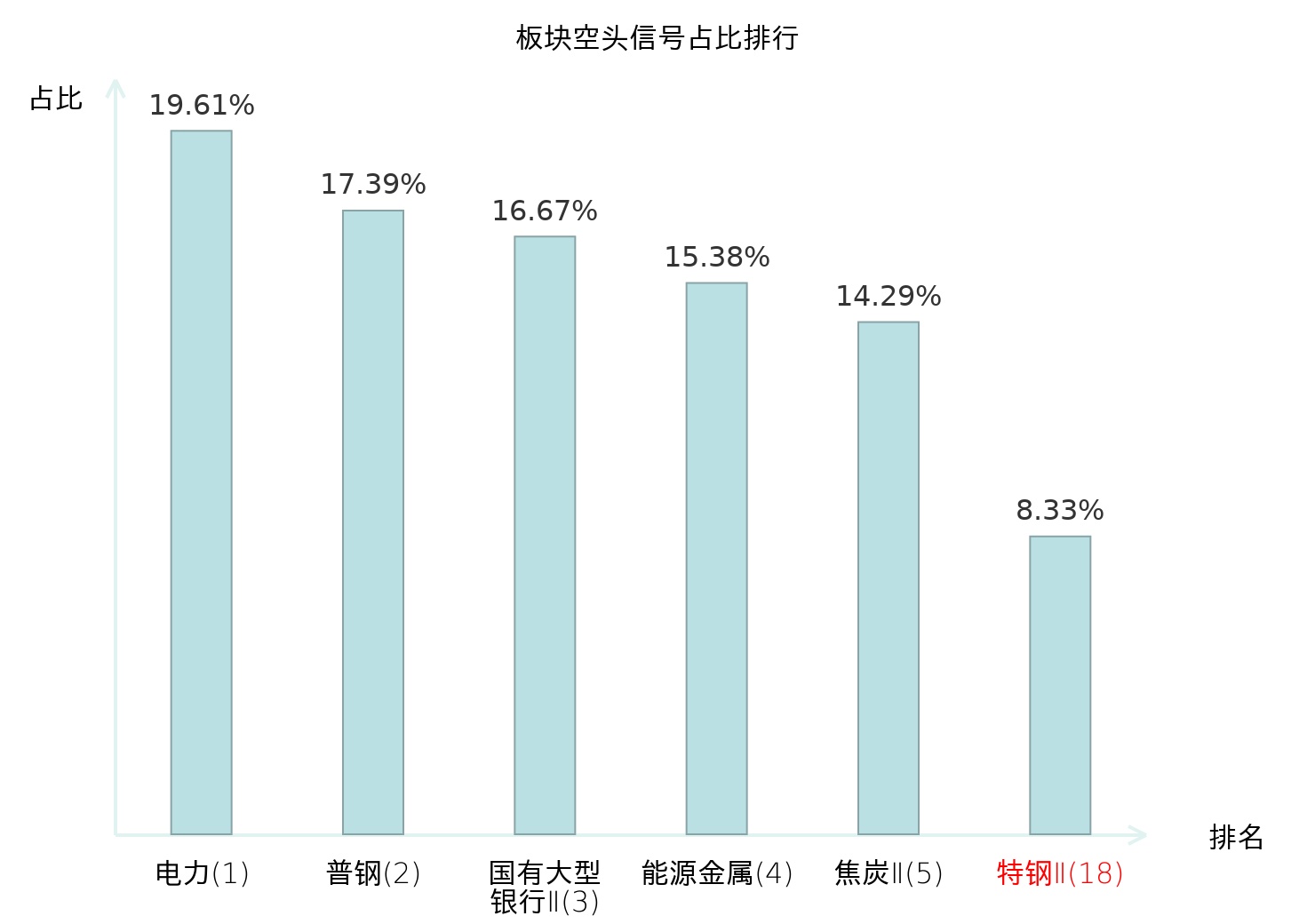 全市场所有行业板块中主力空头信号占比排名中,电力板块位居第一。服装家纺板块名次提升最快,较昨日上升107位。