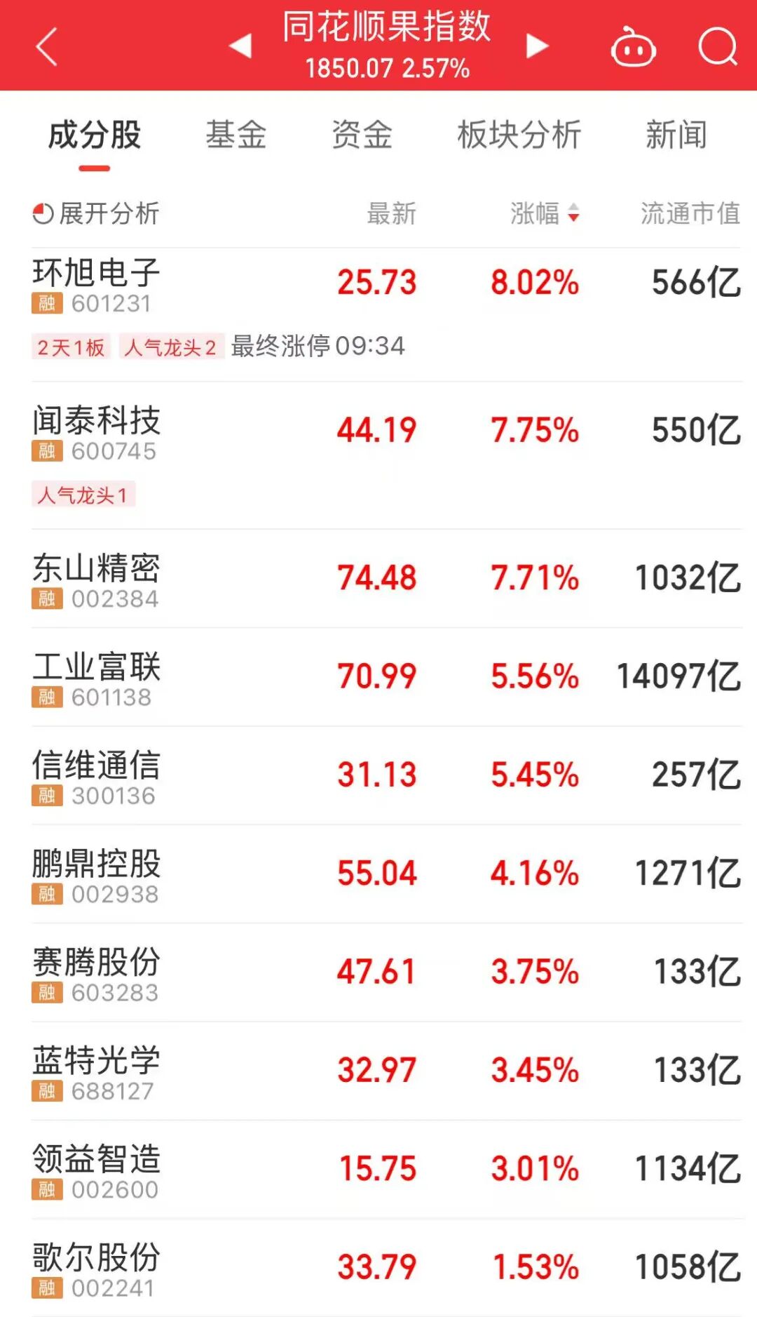 今天上午,科技股表现活跃,早盘大幅冲高。消费电子、光模块、存储芯片等板块涨幅居前。