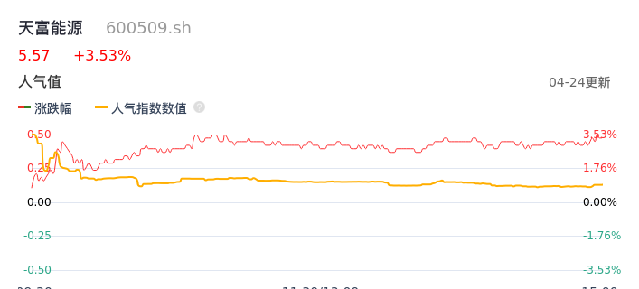 04月24日,天富能源收报5.57,股价涨幅3.53%,成交金额1.01亿元,换手率1.33%。