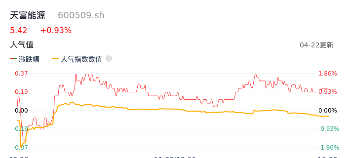 04月22日,天富能源收报5.42,股价涨幅0.93%,成交金额1.05亿元,换手率1.41%。