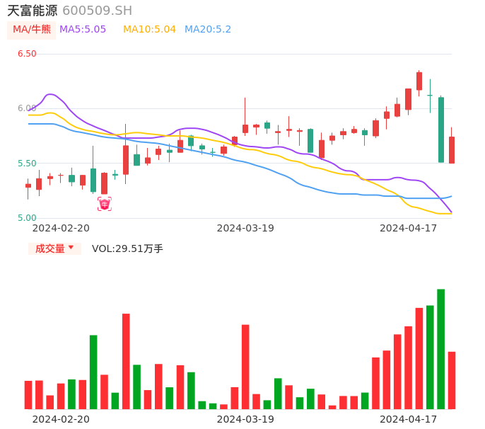 04月17日,天富能源收报5.74,股价涨幅4.17%,成交金额1.68亿元,换手率2.14%。