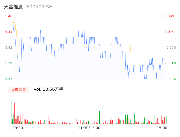04月23日,天富能源收报5.38,股价涨幅-0.74%,成交金额5710.74万元,换手率0.77%。
