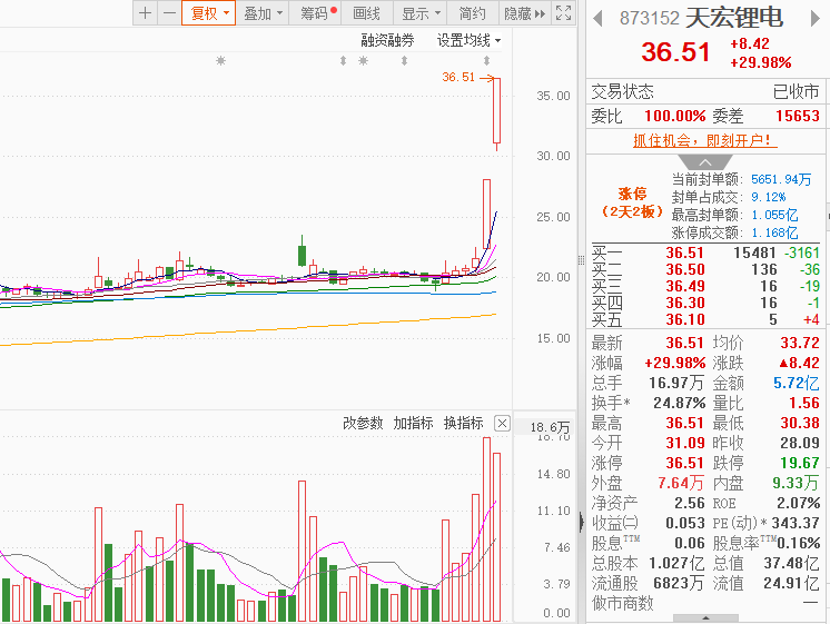 市场情绪:市场热点集中在新能源方向,早前冲高回调的AI算力硬件也展开反攻,情绪再度被调动起来,全天全市场超4800只个股上涨,下跌个股不足500只。今日共96股涨停,连板股总数7只,16股封板未遂,封板率为86%(不含ST股、退市股)。焦点股方面,安正时尚一字涨停晋级4连板,西部黄金反包涨停走出5天4板,北交所个股持续活跃,天宏锂电30CM2连板。