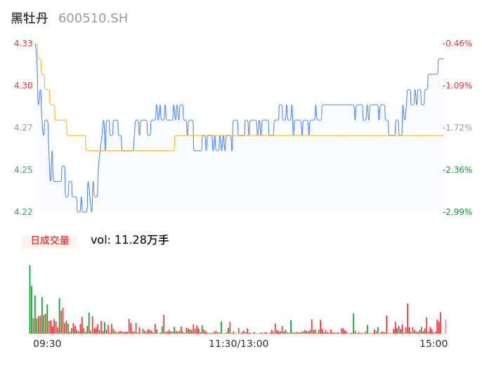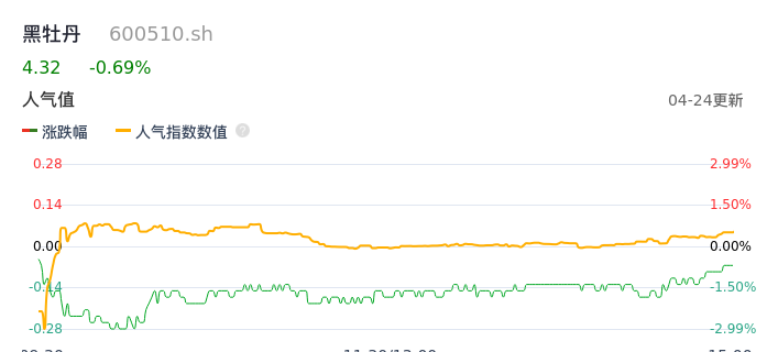 04月24日,黑牡丹收报4.32,股价涨幅-0.69%,成交金额4819.96万元,换手率1.09%。
